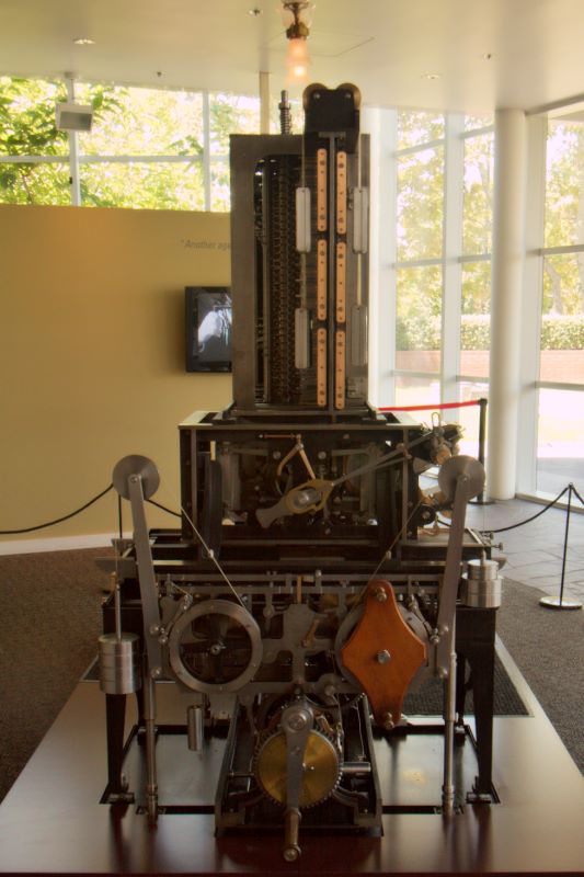 View of the Difference Engine No 2 on it's base. This is looking directly at the print output unit.