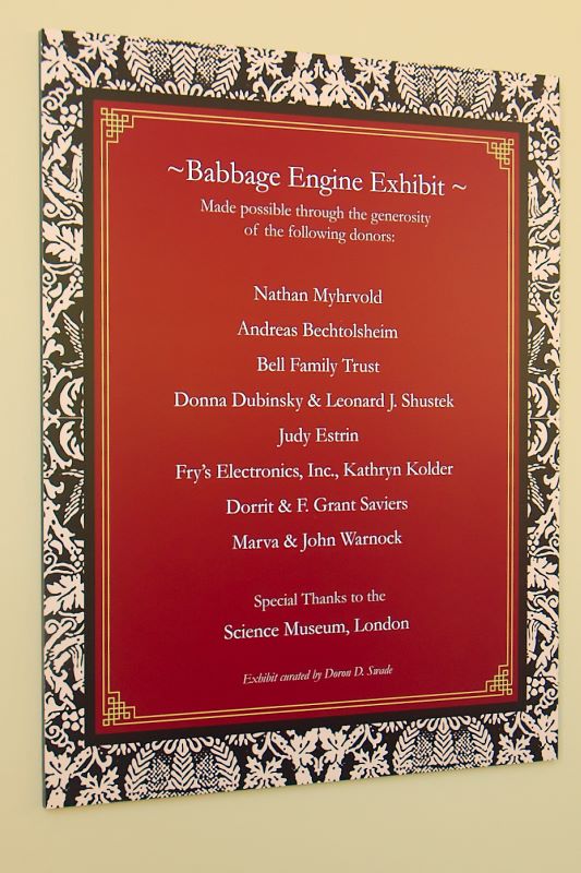 Here's the plaque the museum had up thanking their supporters. Good old Fry's.
