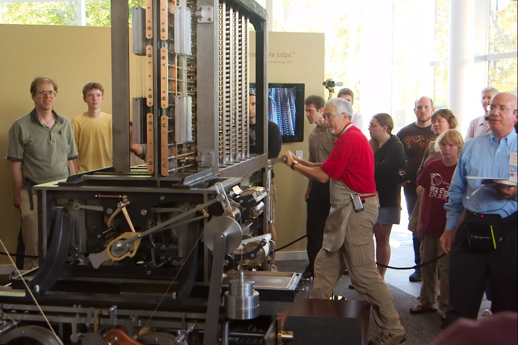Here you can see the Difference Engine running. The guy in the