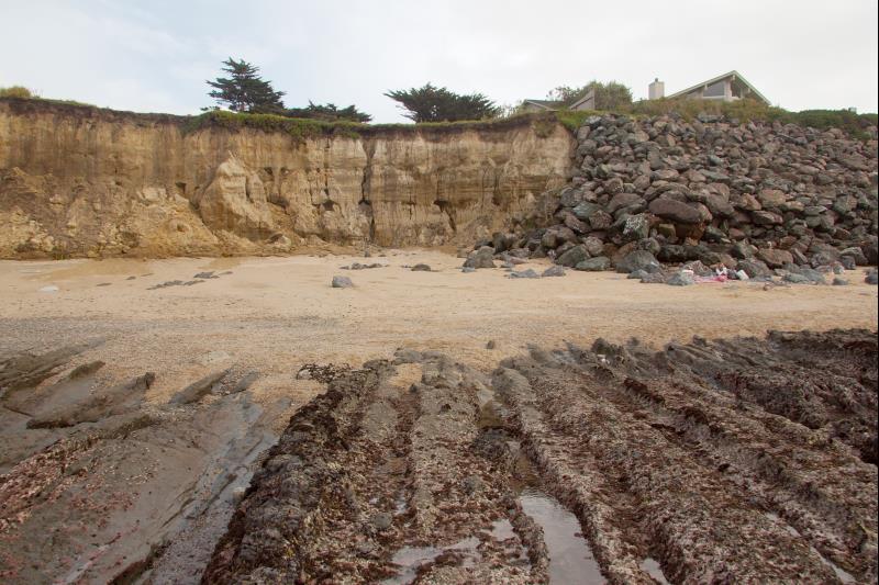 Fitzgerald Marine reserve. View looking back from the tide pools towards the land. Interesting how the sea is cutting away the soil.