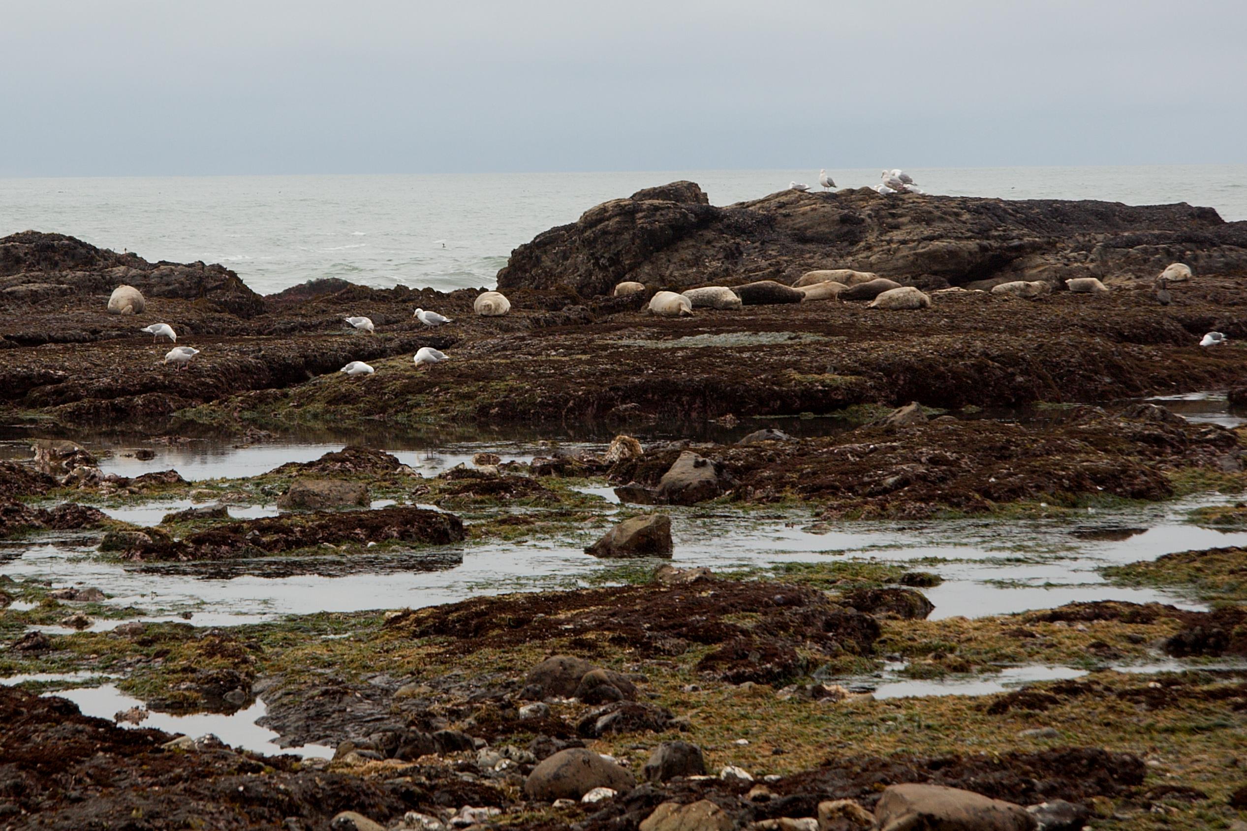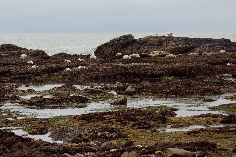 People are not allowed to get any closer than 300 feet to the seals. The seagulls didn't hear about that rule.