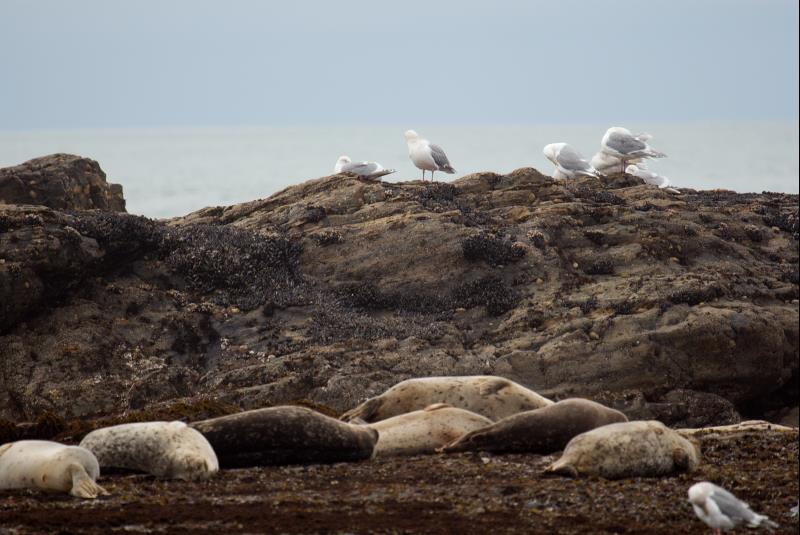 The seagulls were doing more than the seals. The seals were probably partying way to hard the night before.