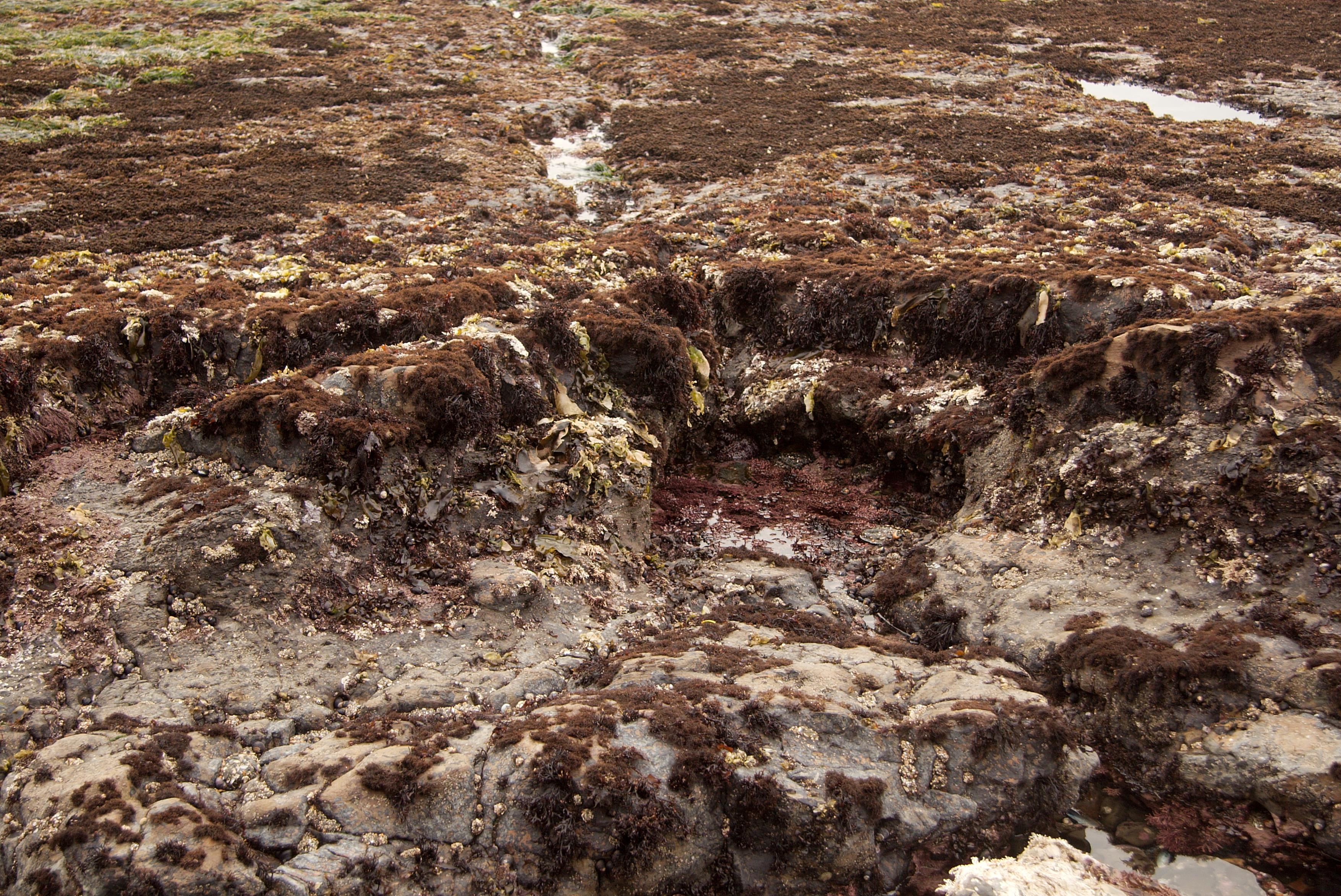 Interesting leaching look. The water is further back, towards the top of the picture. So this hollow must turn into a deep pool when the tide comes in.