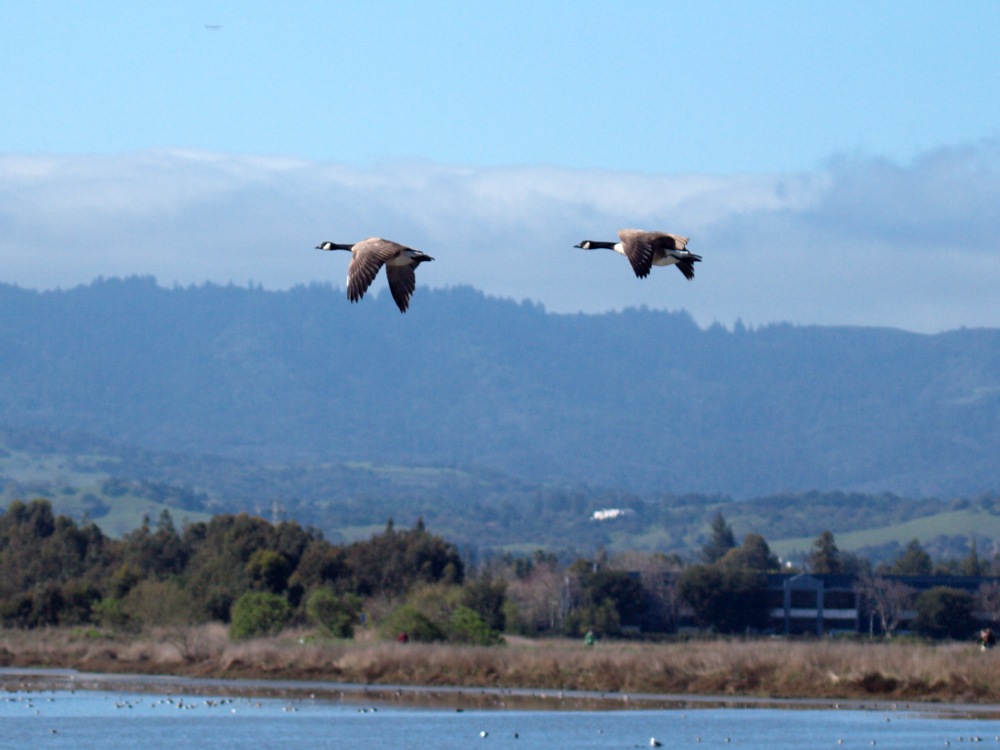 Geese on their way north. We saw pairs or triplets of geese departing every 10 or 15 minutes while on the trail.